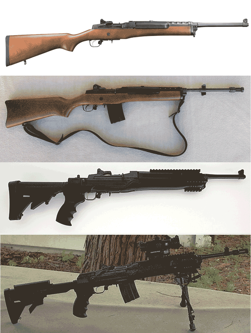 What you’re looking at is referred to as a ranch rifle. It’s a semi-auto with a wood stock. Recently, they put a black dress on it in some models for people who think “if it’s black it’s tacti-cool!” Surprisingly, this did not make the gun a weapon of mass destruction or any more deadly.